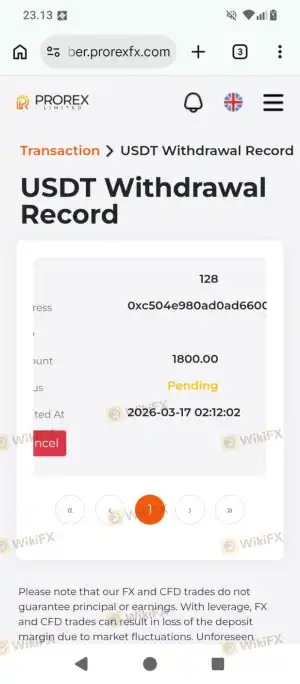 我在Prorex存入了500美元资金,并从我的交易中获利。我于2026年3月17日提交了1,800美元的提款申请,但从未获得批准,且至今无法联系到客户支持。ini.Ini 这显然是打着交易商幌子的欺诈行为,远离这个交易商,因为他们永远不会支付利润和已存入的本金。