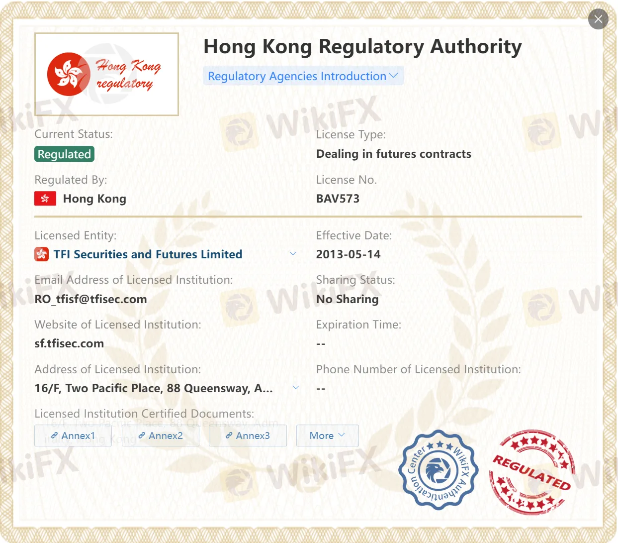 作为香港证券及期货事务监察委员会认可的持牌机构(中央编号:BAV573)和香港交易所的参与者,它在证券和期货交易运营中持有1类(证券交易)、2类(期货合约交易)和4类(证券咨询)的受监管业务许可证。