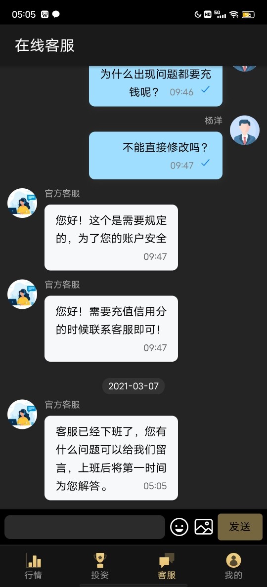 这个平台是一个小女孩推荐的,然后带着我买外汇,确实赚到钱了,后来因为银行卡输错了冻结所有账户,后来用资金的百分之二十又把资金解冻了,再一次提现的时候说现在的信用分不够还要充钱提升信用分才能够提现,这种情况合理吗?已经前前后后20多万砸进去了,现在还是提现不出来,弄得自己现在是血本无归[d83d][de2d][d83d][de2d][d83d][de2d]真不知道这个平台是正规的还是推介给我的这个人让我注册的是个黑平台,难道是高仿吗?