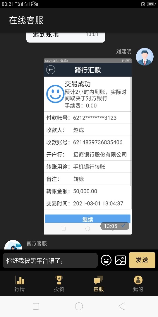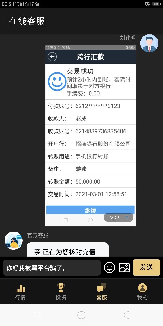 本金23w,账号里现有73w多,提现的时候说银行卡输入出错,被冻结,让我交21万的解冻金