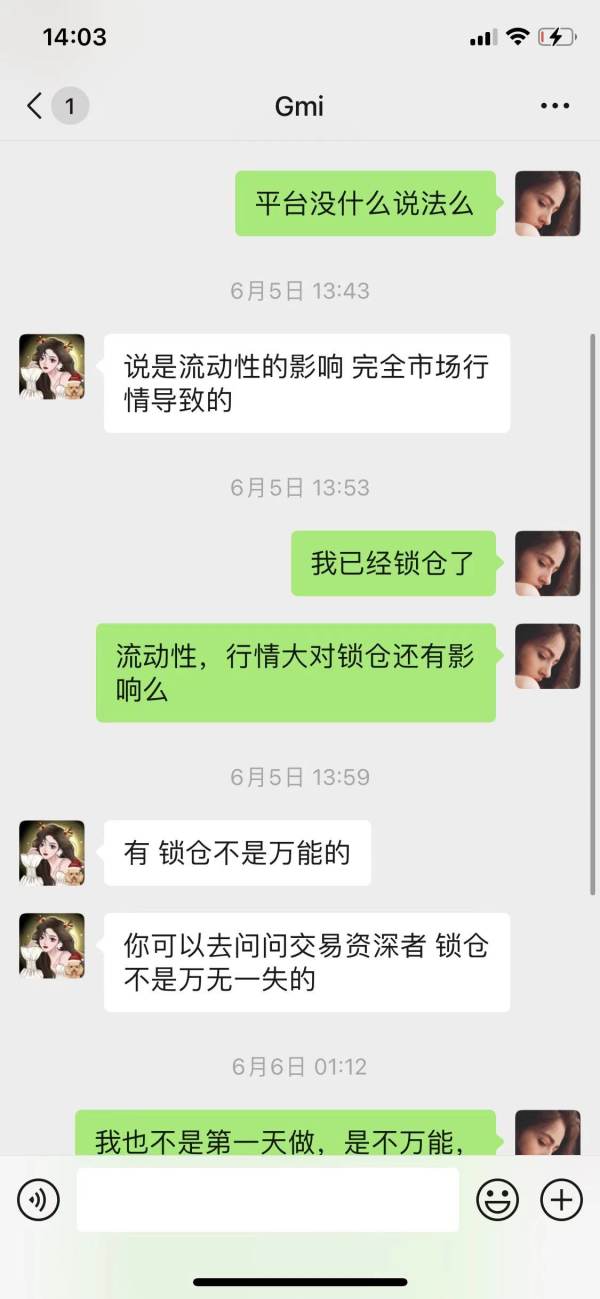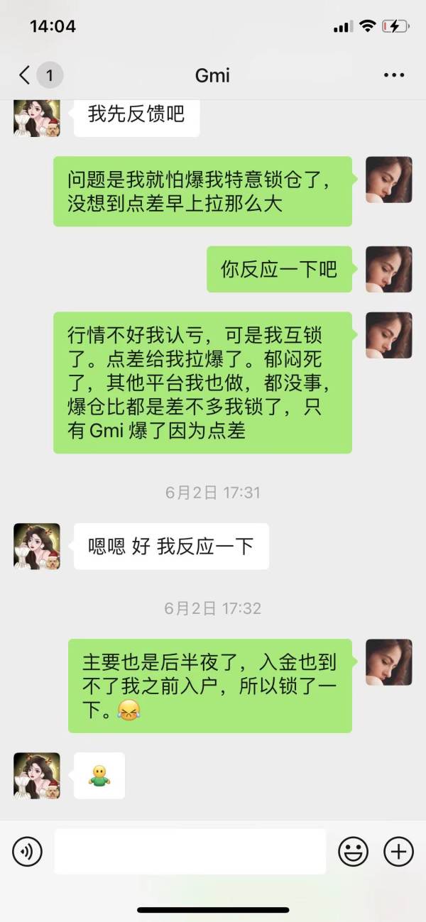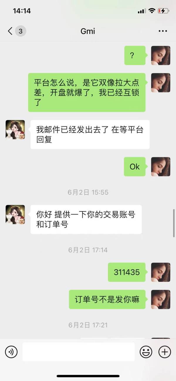 本人在GMI做外汇交易早上拉大点差导致爆仓