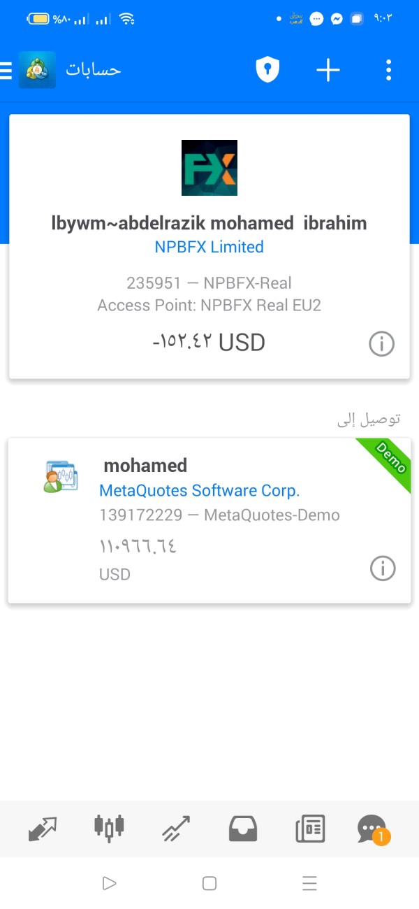 هل يوجد وسيط حقيقى وبوركر فى مصر ام انها خدعة ولايوجد فى مصر وسيط للشركة الروسية NPBFX .. لقد تم حظرى من جميع الجروبات الخاصة لكن الحسابات مازالت مفتوحة رغم أنى فقط طالبت بأحد أن يقنعنى بما حدث من انزلاق سعرى فى توقيت لم يكن توقيت فتح المنصة ولم يتم تعويضى حتا لهذا الانزلاق السعرى وكل ما عليهم هو المهم لهم الإيداع كيف يتم اتصال بوركر بعميل لعمل ايداع وهو فى مرجنة حساب بدون وجة حق فى وقت تمت المارجنة قبل فتحت المنصة بساعة فى التوقيت الصيفى فى مصر وكان على MT4 ان تفتح المنصة فى افتتاح الاسبوع الساعة 23.5 ولكن فتحت الساعة 22.5 قبلها بساعة كاملة انتم المارجنة ولم يأتى حقى من بروكر او الشركة NPBFX. ورقم الحساب بالصورة بالسالب ومعةتوقيت وتاريخ المارجنة... رجاء وصول الرسالة الى الشركة الروسية الاساسية فى مقرها فى روسيا نظرا لانى فتحت موقع الشركة وليس لها وكلاء فى مصر حتا لا يقع غيرى ضحايا لهؤلاء المحتالين واذا كانت رؤيتى صحيحة فعلى السلطات المالية والدولية والقانونية محاكمة هؤلاء اذا كانوا محتالين ... وشكرا لكل من أقام العدالة فى الارض