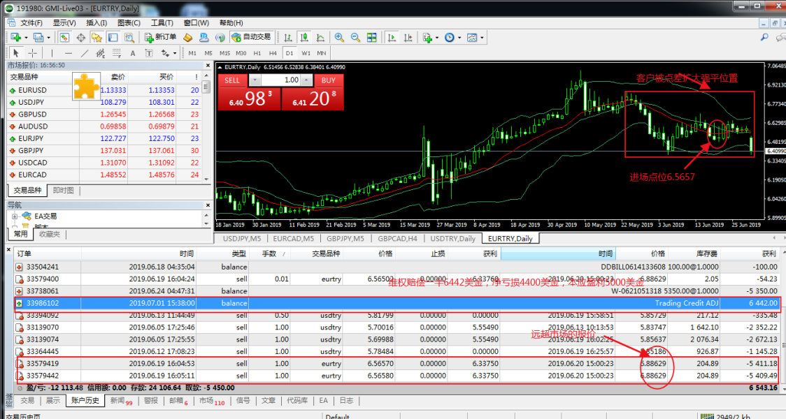GMI暴力滑点巨额点差3600点,拉爆客户账户!