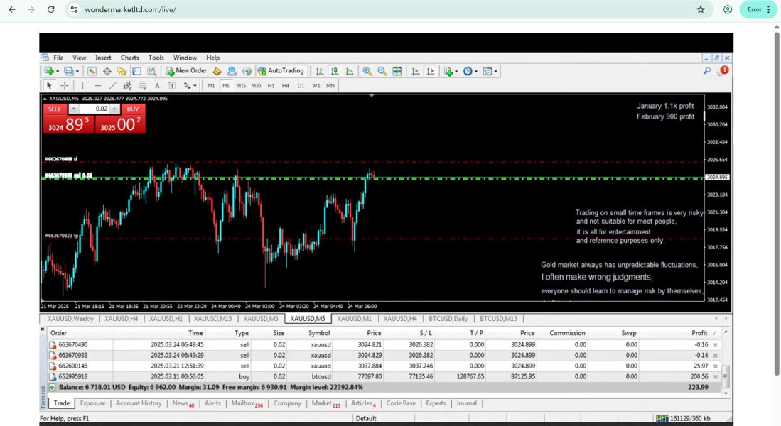 I've been trading with Wonder Market Ltd. for a while now, and I must say, it's been an excellent experience. Their platform is user-friendly, execution speed is fast, and spreads are quite competitive. One of the standout features is their diverse account options, catering to both beginners and experienced traders. I appreciate their transparent approach to trading, with no hidden fees or unnecessary complications. Deposits and withdrawals are smooth, with quick processing times. Customer support is responsive and knowledgeable, always ready to assist with any queries. Plus, their educational resources and market analysis tools have been a great help in improving my trading strategies. Overall, Wonder Market Ltd. is a trustworthy and reliable forex broker that delivers a seamless trading experience. Highly recommended! ⭐️⭐️⭐️⭐️⭐️