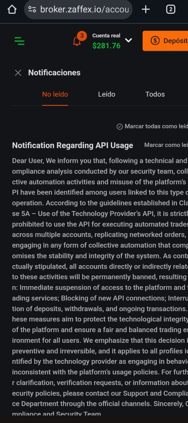 están babeando todas las cuentas con la excusa de que se está usando mal la apy pero es falso solo están Robando los fondos de los inversores, tampoco aprueban las verificación de identidad ya que son 4 niveles, el último no lo aprueban solo como excusa para no pagar los retiros. llevo más de 8 días esperando la verificación ✅ y nada, siempre lo rechazan con la excusa de que el documento no es válido pero no es así, solo quieren robar los fondos de todos así que compartan y no recomienden este basura de estafa.