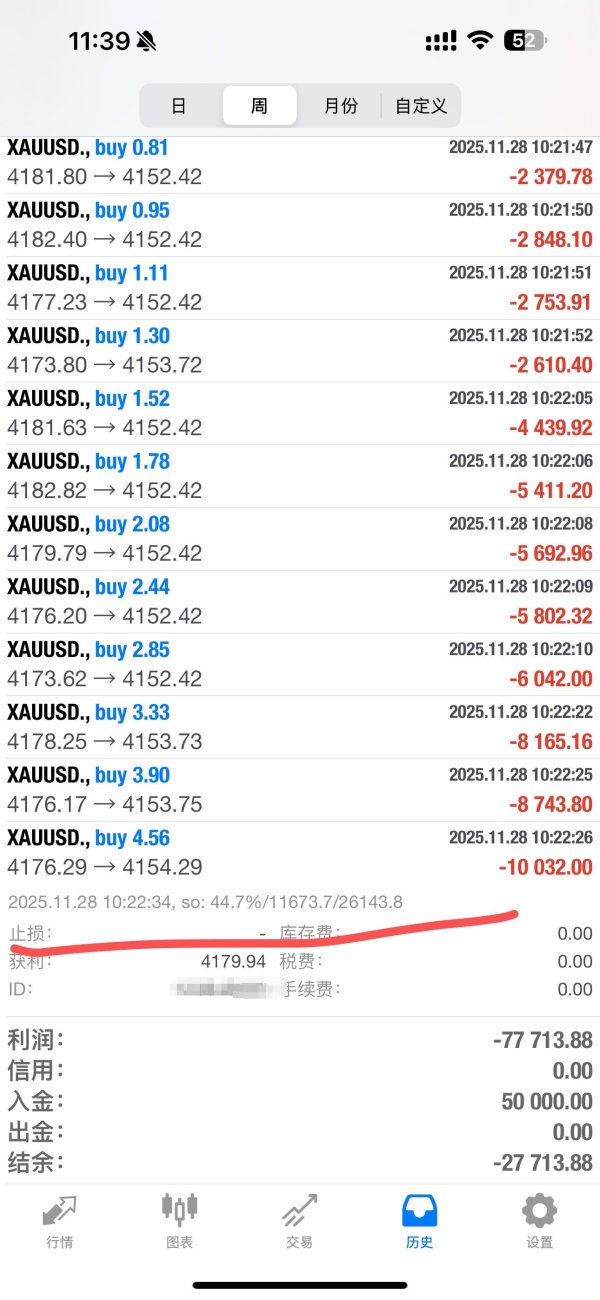 11月28号平台利用市场波动恶意滑点40美金导致账号全部爆仓!