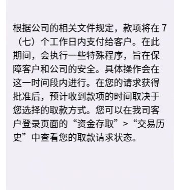 一直说提现请求将在7个工作日内处理完毕,七个工作日过完了也不给提现,一直卡着出金