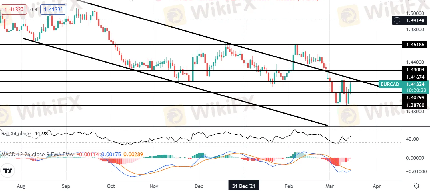 欧元加元价格走势值得关注。自去年第三季度以来,该货币对一直在广泛的看跌通道内走低。然而,最近对 1.3876 支撑位的测试已经看到价格找到坚挺的需求。由于该货币对可能在此处形成双底,并且 MACD 和 RSI 均转高,我正在关注通道的突破和更广泛的走高。我将关注的水平是突破 1.43,目标是升至 1.4618。至此,我们将突破通道顶部并清除局部高点,因此应该有一些不错的动力可以发挥作用。