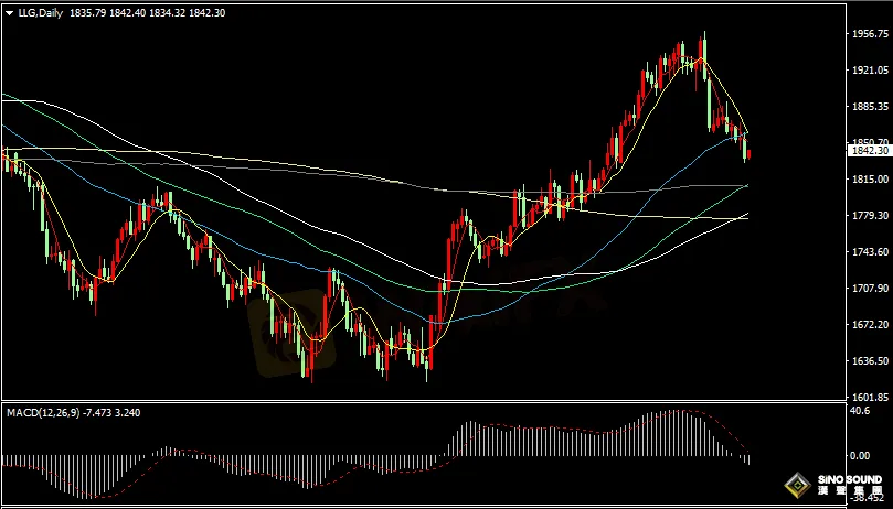 昨晚公布美国零售销售数据强劲,美元指数大涨一度突破104大关,但昨晚美盘时段现货黄金振幅不大,金价持续在1830-1840区间振荡运行,不过,昨日亚市金价在1860关口附近大幅回落,昨晚金价最终报收于1835.69美元/盎司,昨日跌幅0.98%。