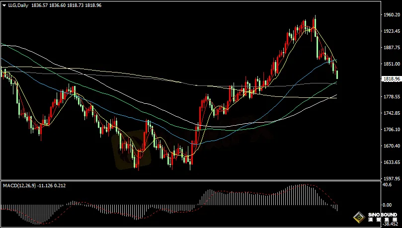 由于经济增长强劲和通胀走强,美联储加息预期升温,近日美元和美债收益率持续攀升,美元上涨使得黄金短线面临下探压力,目前金价已经跌破1820关口,存在下探1800关口风险。