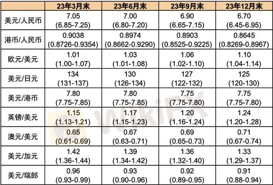 2023年各货币对预测表丨资料来源:中金公司研究部