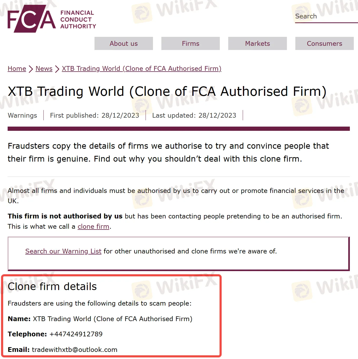 FCA警告公众,一旦发现可疑公司,应立即检验其注册信息。可以在FCA官网查询该公司的授权登记详情。如果存在假冒注册等情况,应立即向FCA举报。