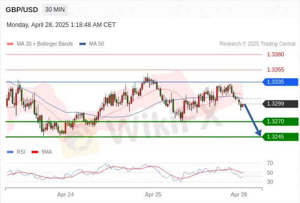 在 1.3335 之下,看跌,目标价位为 1.3270 ,然后为 1.3245。
