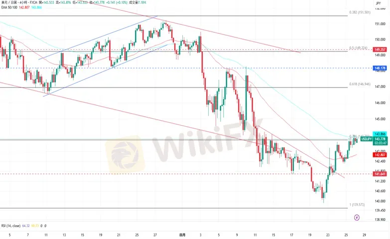 摘要:美元/日币(USDJPY):新闻事件:周五,美元/日元上涨至143.637。日本经济再生担当大臣赤泽亮正将于4月30日再度出访美国,与美国财政部部长贝森特进行第二轮的关税谈判。日本央行预定5月1日公布利率决议,外界普遍预计日本央行将会维持利率不变。经济数据方面,美国4月密歇根大学消费者信心指数终值为52.2,美国4月一年期通膨率预期终值为6.5%。周一,美国经济日程将公布4月达拉斯联储商业活动指数