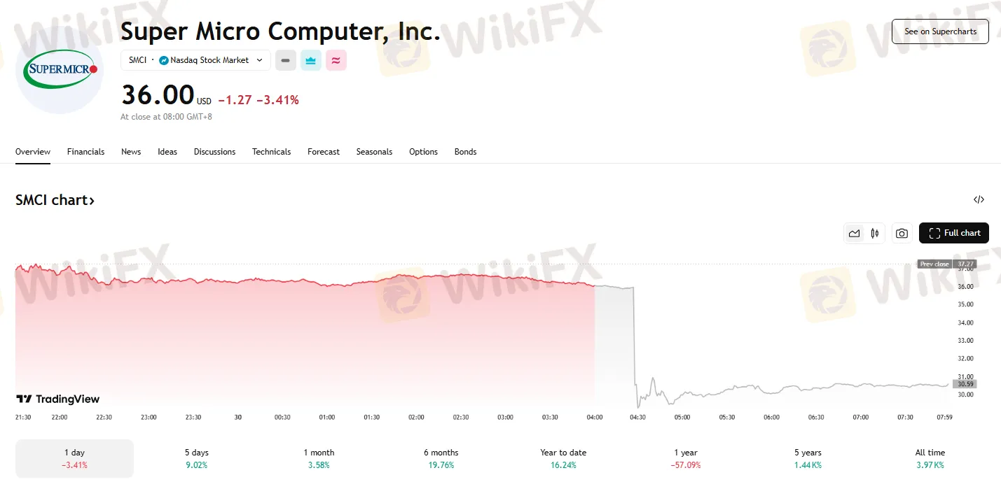 超微电脑业绩指引逊色,盘后股价跳水约 20%