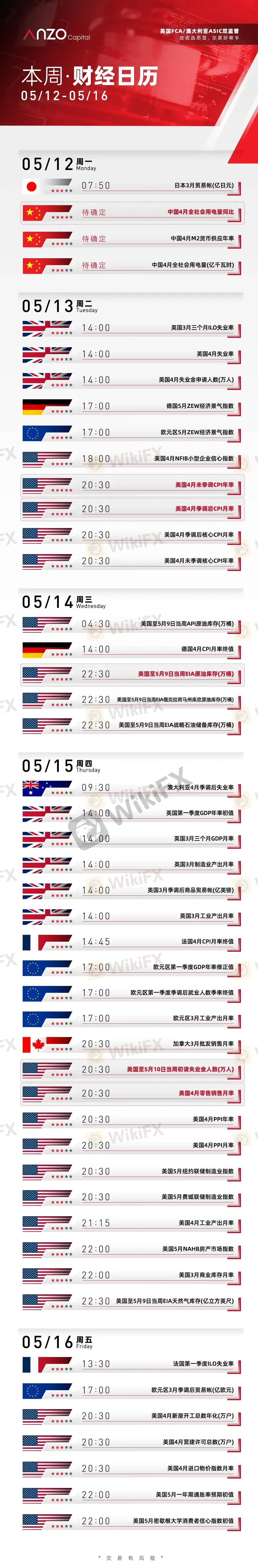【交易必备· Anzo财经日历】2025年05月12日-2025年05月16日