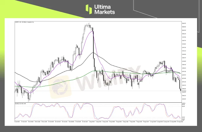 摘要:今日Ultima Markets 为您带来了 2025年8月14日的USDJPY深入分析USDJPY 技术分析USDJPY 日线图表分析(USDJPY 日线图,来源Ultima Markets MT5)经历7月下旬强涨,价格推至151.00附近高位后,货币对进入大幅回档。 近期K线形态显示下行压力不断增强,最终形成了一个偏空格局。 随机指标先前在80上方超买区域,但目前已大幅逆转,预示着看涨势头正