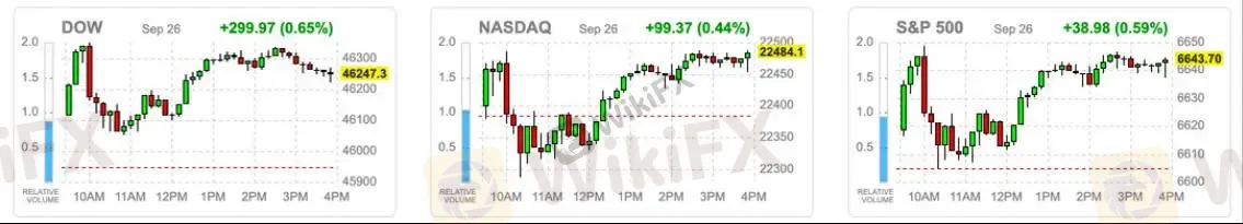 行业表现上,医疗保健股因232调查及疫苗政策承压(MRNA -4.9%、LLY -3.7%);非必需消费中,特斯拉因欧洲销量不振承压;能源股受油价走强支撑;科技股分化,苹果与英特尔领涨,NVIDIA与AMD涨幅有限,甲骨文因遭降评重挫。