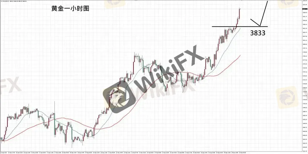 摘要:【基本面分析】周一黄金走势延续上行并再度创高。除近期经济数据强化美联储降息预期外,美国联邦政府再度陷入预算僵局,关门风险可能影响本周陆续公布的经济数据。虽然历史上政府关门对市场冲击有限,但短期内仍可能带来波动。地缘局势方面,俄罗斯宣布已控制乌东部分领土,战事难以在短期内结束,同样为金价提供支撑。【技术分析】黄金一小时图,走势脱离震荡区域后持续向上,并刷新短线高点,反应买盘强势;如后续回落未击破前期