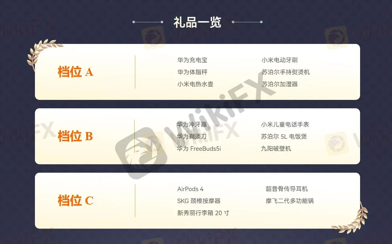 庆典献礼,真金回馈!净入金达标即可领取专属好礼,每一份都寓意“纳财聚福”。