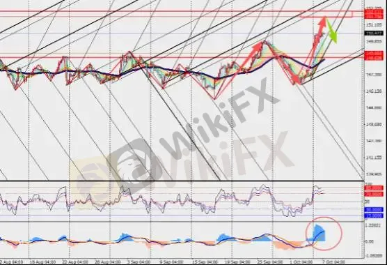 美元兑日元H4级别大幅上行,然而,MACD双线和量能柱构成背离缩量。长期日本国债曲线在一段时间内一直与其常见的周期性驱动因素脱钩,不确定性的增加可能会使长期风险溢价暂时保持较高水平。目前,两党尚未就短期拨款法案达成一致,而这是确保政府支出和各项运作得以持续的关键。