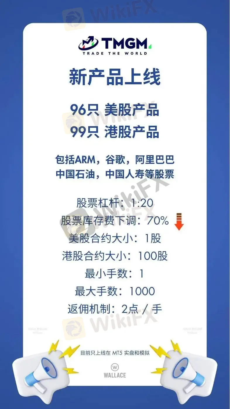 TMGM此次重磅上新美港股票,是我们致力于为用户提供顶级交易工具和全球化投资视野的又一力证。我们相信,凭借更优越的交易条件、更丰富的投资选择和更专业的平台服务,将能更好地助力每一位投资者把握全球市场的机遇。