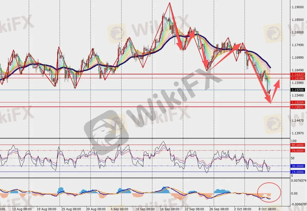 技术面: 欧元兑美元H4级别超跌反弹,并依旧在48日多空分界线下方运行。此外,MACD双线与量能柱在零轴下方底背离收敛。如果法国恢复政治稳定,无需重新选举,欧元兑美元可能恢复上行趋势。