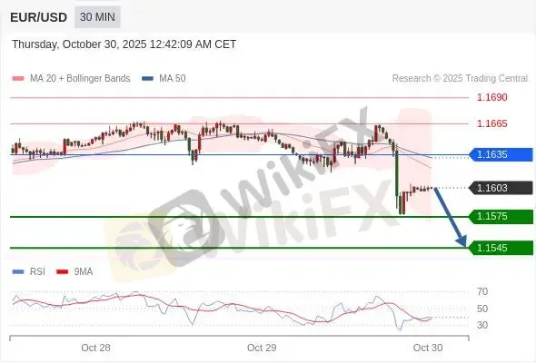 交易策略: 在1.1635之下,看跌,目标价位为1.1575,然后为1.1545。
