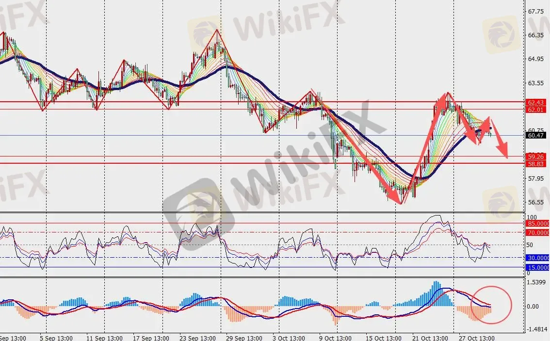 技术面:原油H4级别震荡回落,并在48日多空分界线下方运行。另一方面,MACD双线和量能柱在零轴附近逐步收敛。油价周三震荡回落,美国总统特朗普对贸易会谈持乐观态度,这有助于缓解经济紧张情绪。