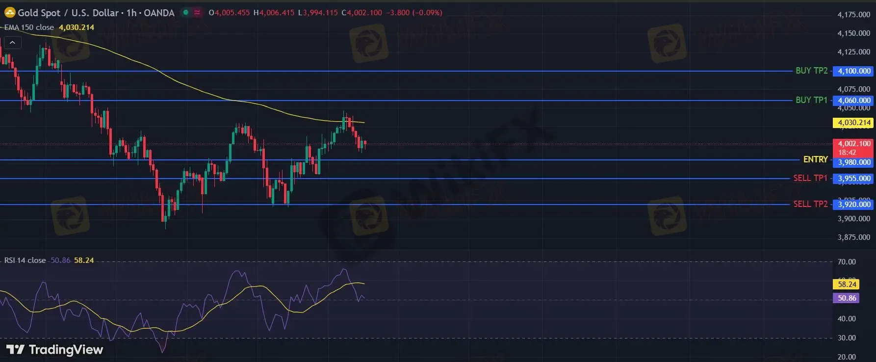 在 3980.00 下,看空,目标价位定在 3955.00 ,然后为 3920.00。