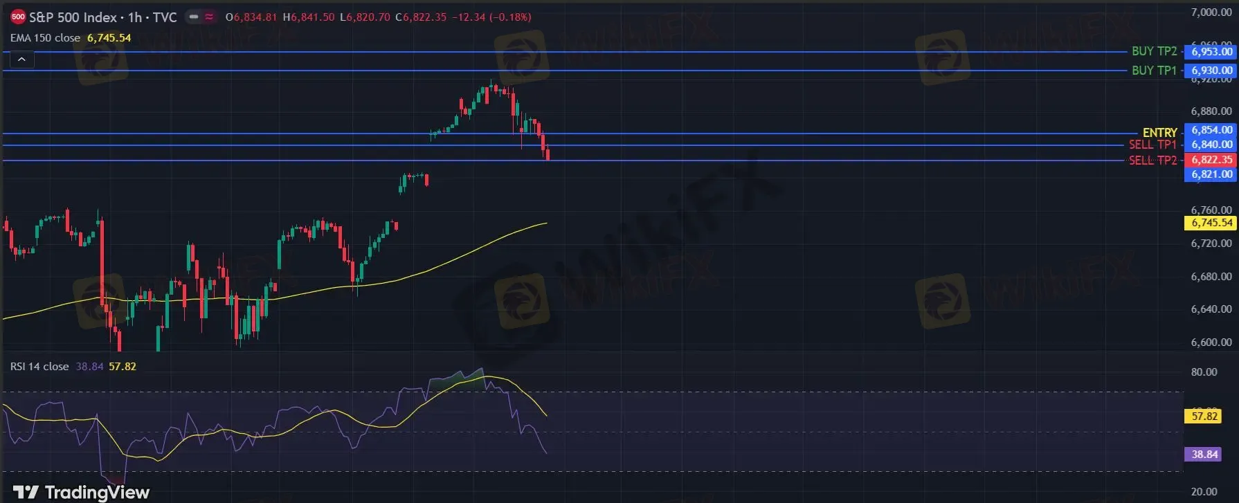 在 6854.00 下,看空,目标价位定在 6840.00 ,然后为 6821.00。