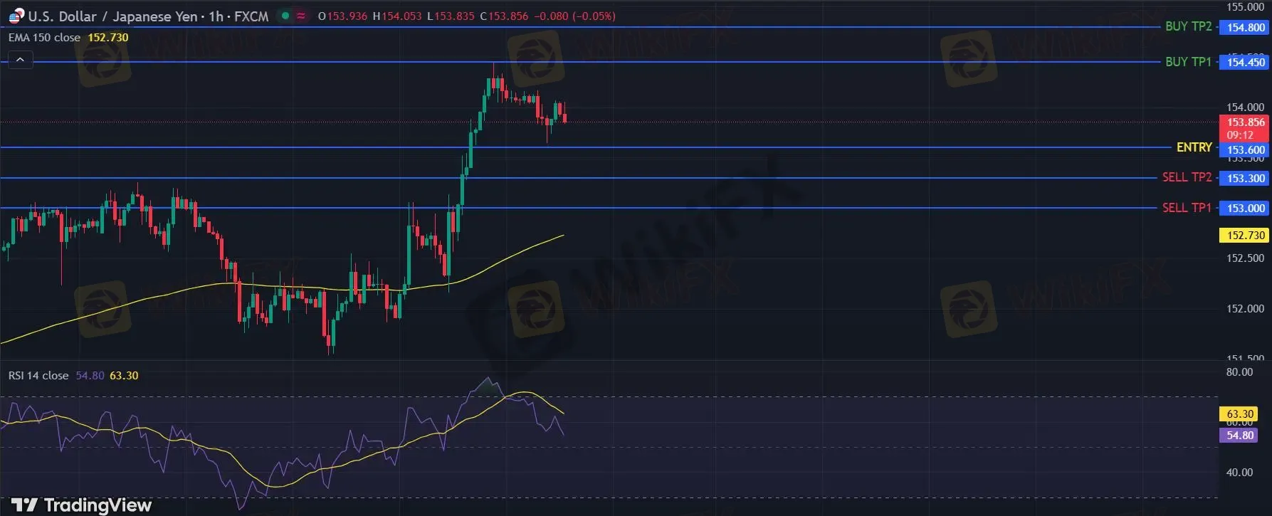在 153.60 之上,看涨,目标价位为 154.45 ,然后为 154.80 。