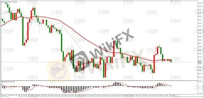 日线上,上一个交易日行情收小阴线,同时行情回落并没有下破20日均线,显示短期下方有一定的支撑。日内关注上方62美元一线压力,下方关注59美元一线支撑。