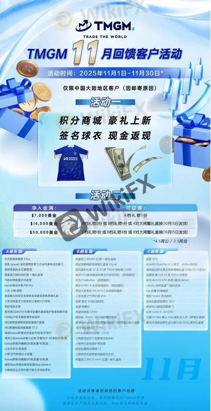 *以上活动受条款约束,最终解释权归TMGM所有