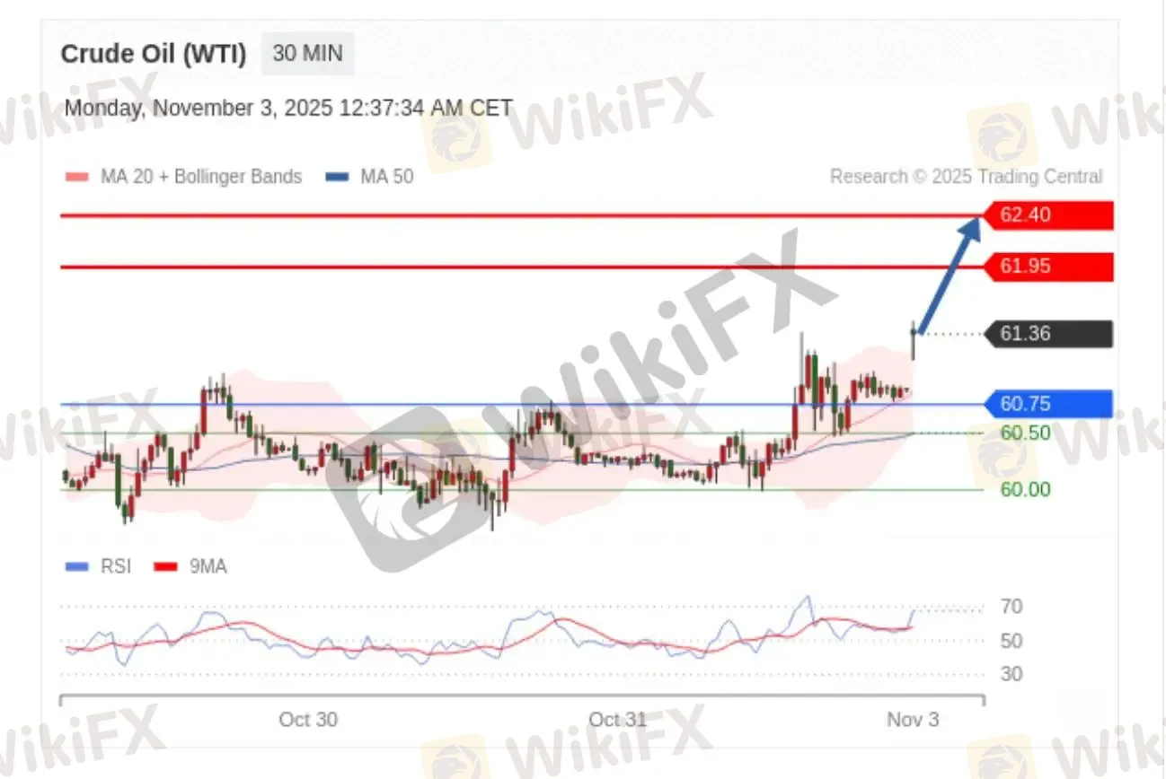 在 60.75 之上,看涨,目标价位为 61.95 ,然后为 62.40 。