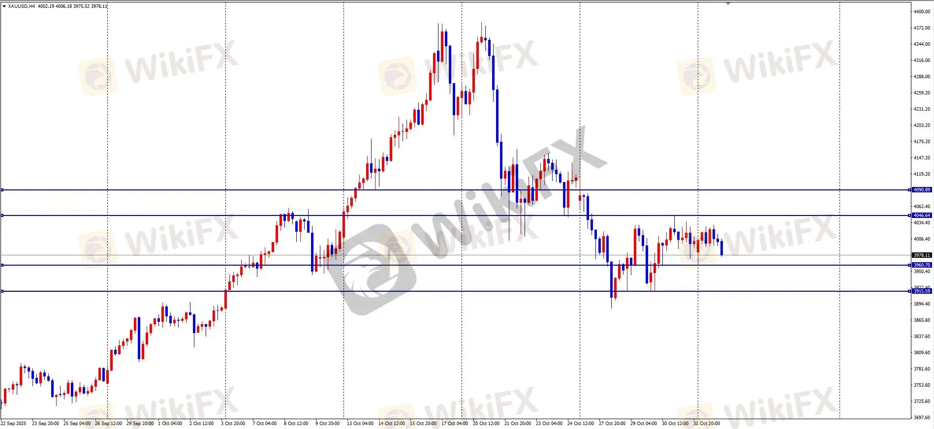 摘要:XAU/USD昨日回顾与ETO Markets观点:黄金昨日亚盘低开至3960附近获黄金分割61.8%支撑,快速反弹至欧盘4027高点,美盘维持震荡,日线收小阳线,全天波幅684点。当前进入“高位喘息”阶段,受美联储政策不明朗、美国政府停摆数据真空、中国黄金免税政策终结三大不确定性围剿。早盘下探3977后,当前区间为3960支撑与4030/4045阻力,需等待突破形成趋势。关键点位与操作建议:上方