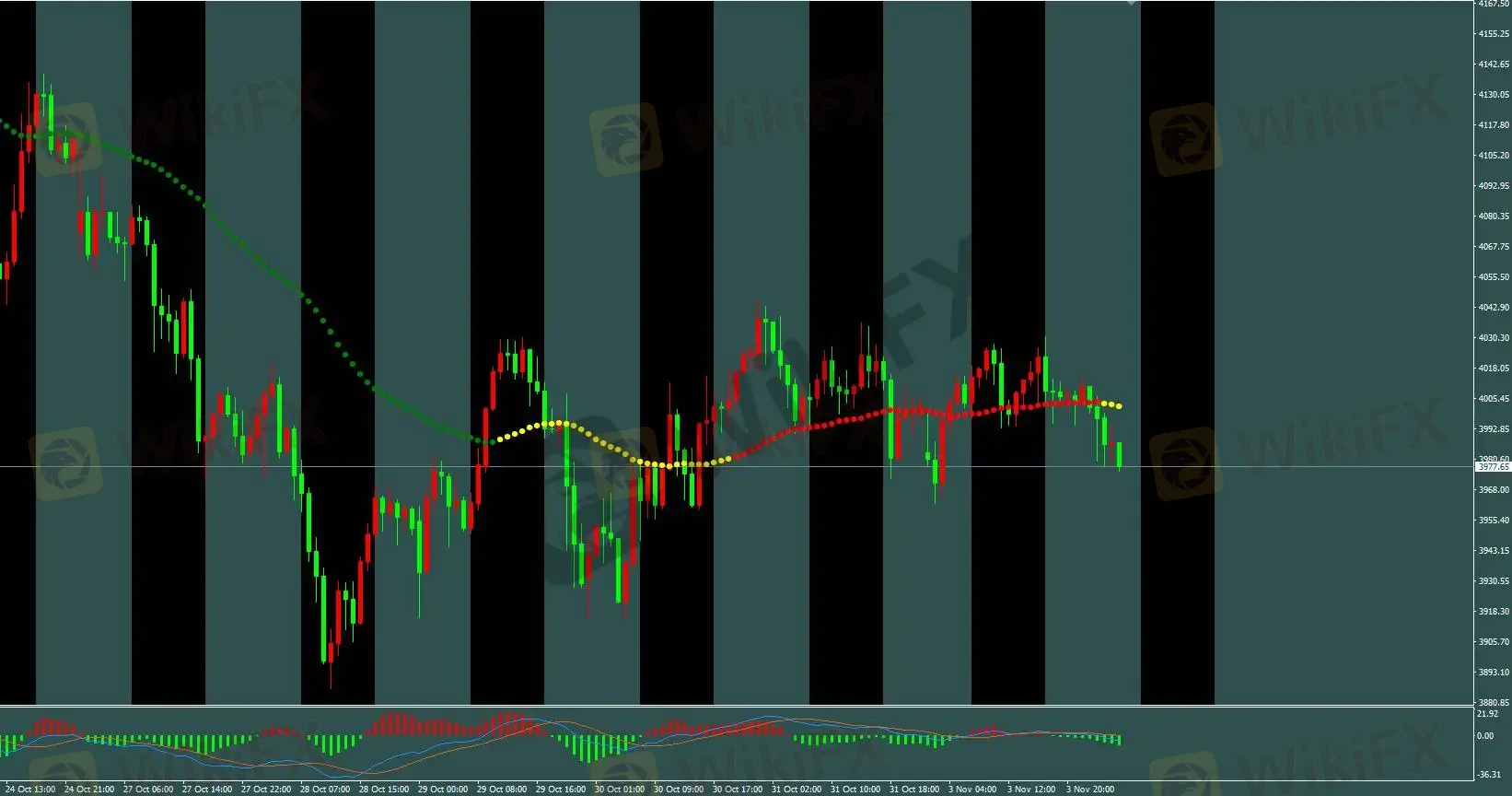 三色线交易策略:三色线由红转黄,H1多单3993入场已盈利150点出场,今日建议结合M5基础模型操作。