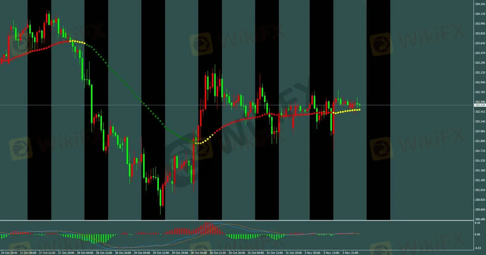 三色线交易策略:三色线由红转黄,H1多单202.3入场已盈利70点,今日参考M5基础模型操作。