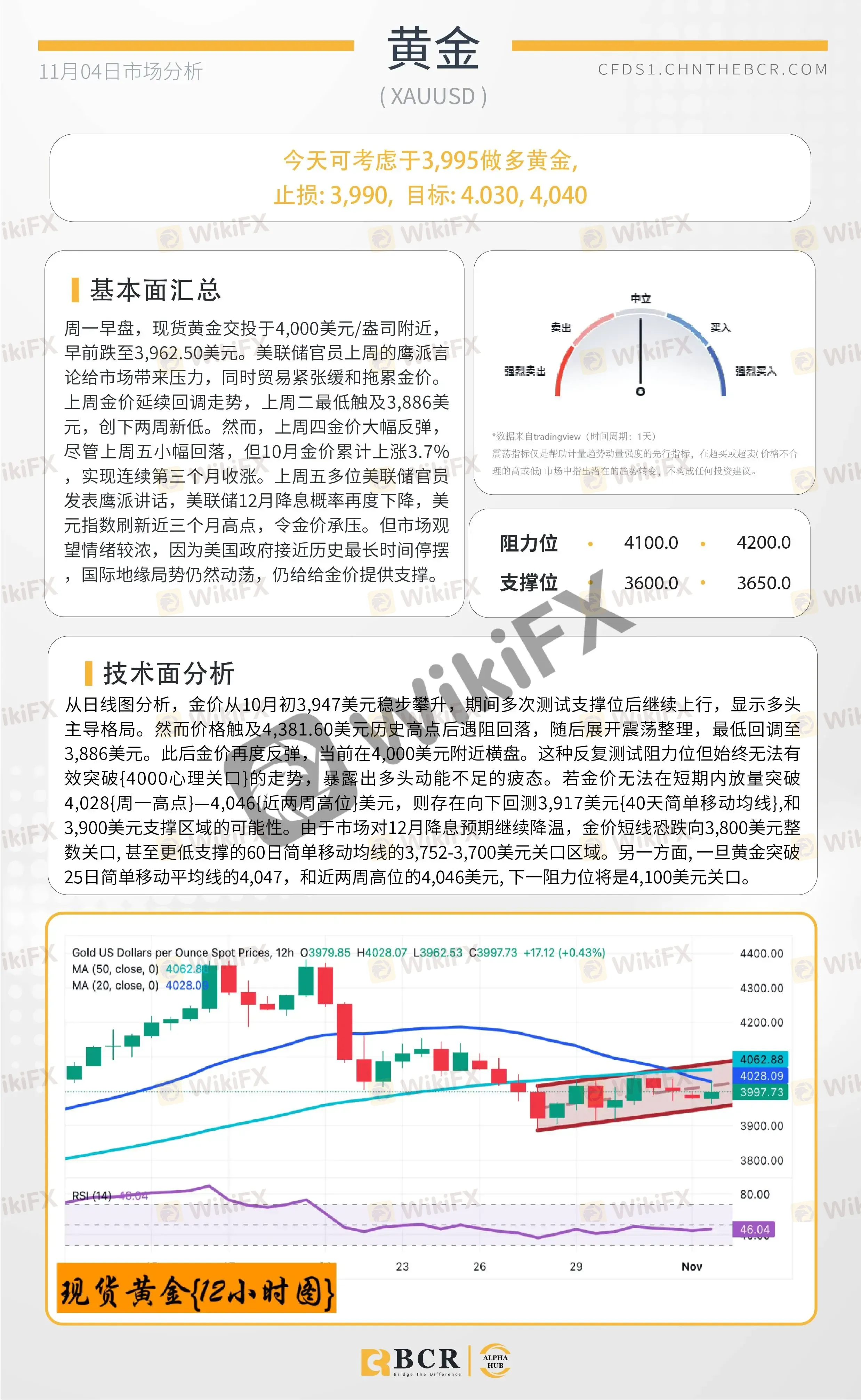 BCR每日早评及分析 - 2025年11月4日