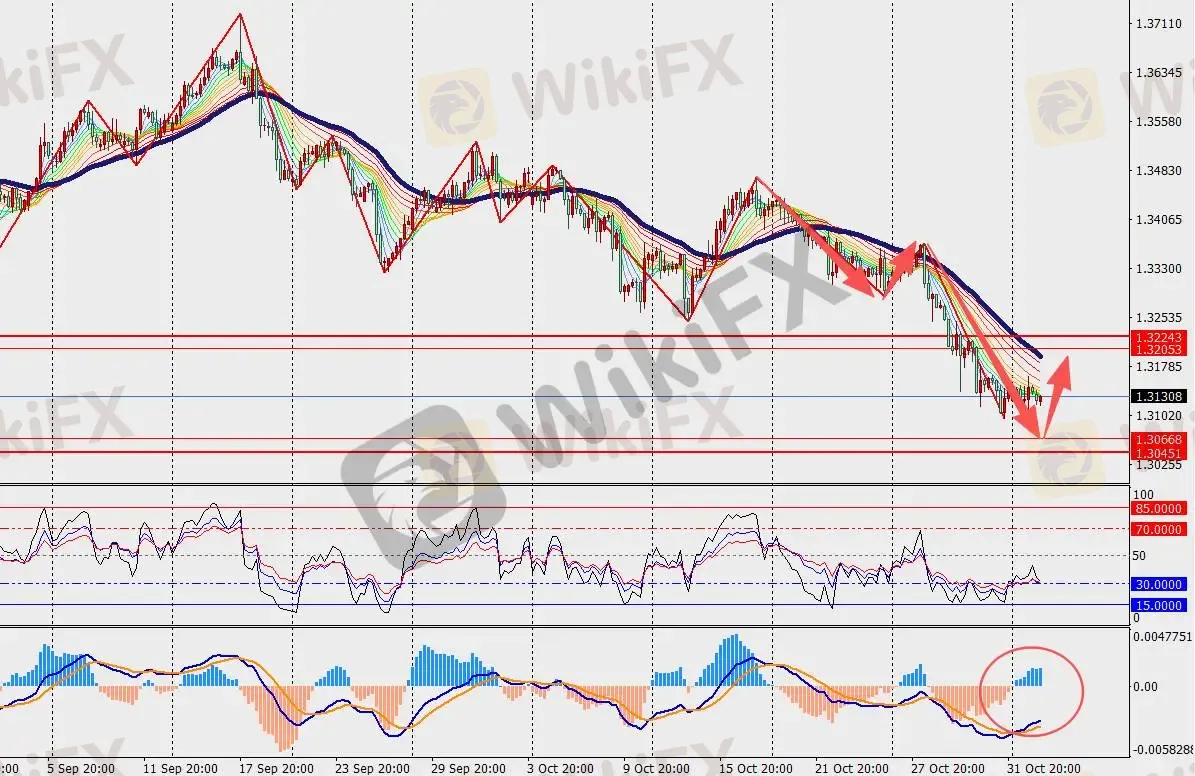 技术面: 欧元兑美元H4级别低位反弹,但依旧在48日多空分界线下方运行。另一方面,MACD双线与量能柱在零轴下方逐步收敛。欧元区就业人数下降的速度略有加快,使制造业的就业收缩期延长至近两年半。