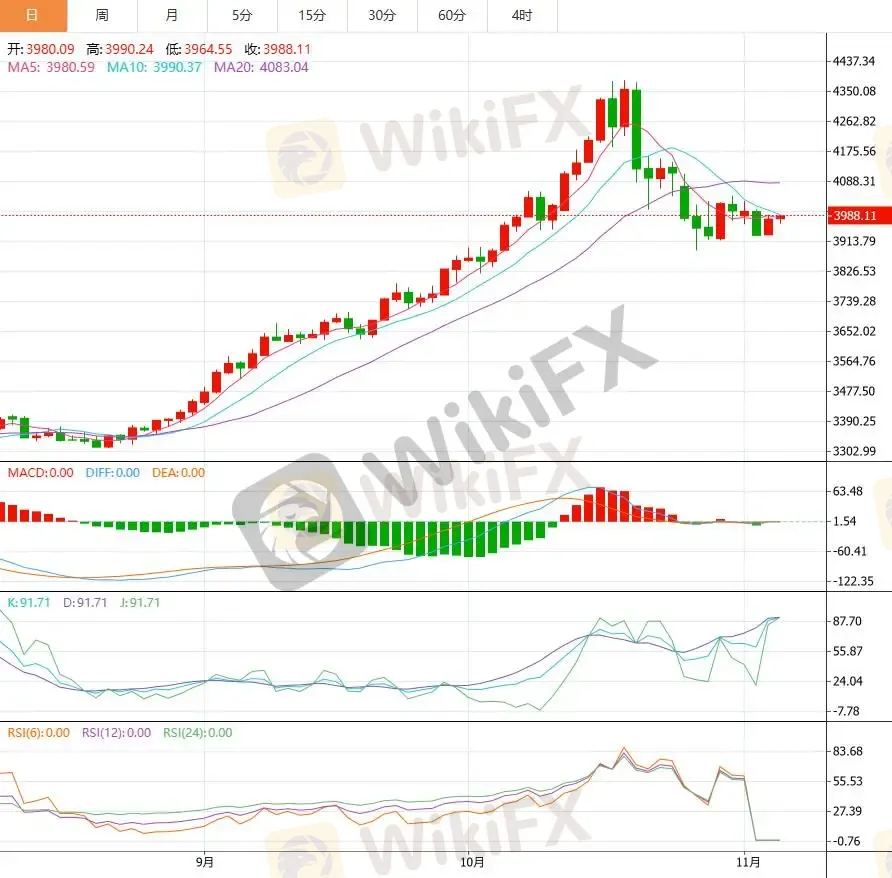 现货黄金在周四(11月6日)亚市早盘短暂跌破3970美元关口,最低触及3966美元,目前交投于3972美元/盎司附近,录得约0.15%的跌幅。尽管如此,金价仍维持隔夜多数涨幅——周三金价曾大涨1.2%,最高触及3990.24美元,收盘报3978.95美元,距离4000美元整数关口仅差临门一脚。当前支撑主要来自逢低买盘与避险需求,但ADP就业数据超预期及ISM非制造业PMI强劲表现,导致市场对美联储12月降息预期降温,美元指数创近五个月新高,美债收益率飙升至近一个月高点,多头面临压力。