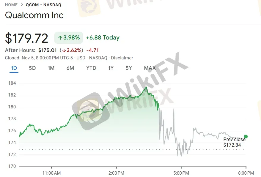 尽管前景指引积极,但市场反应偏谨慎,高通股价在盘后交易中下跌约 2.5%。