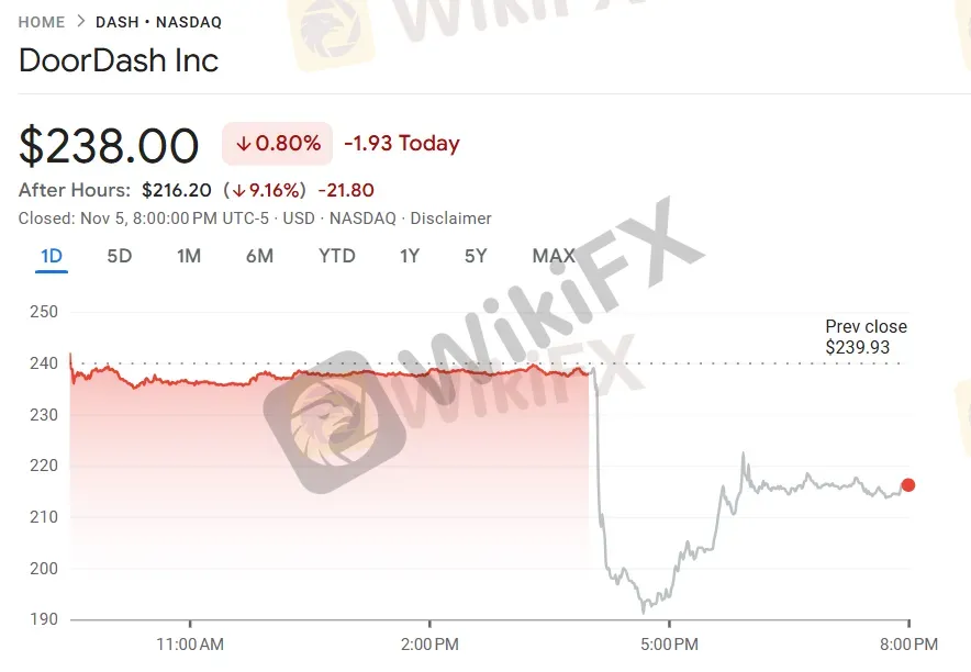 DoorDash 扩大投资引发成本担忧,盘后股价暴跌 9%