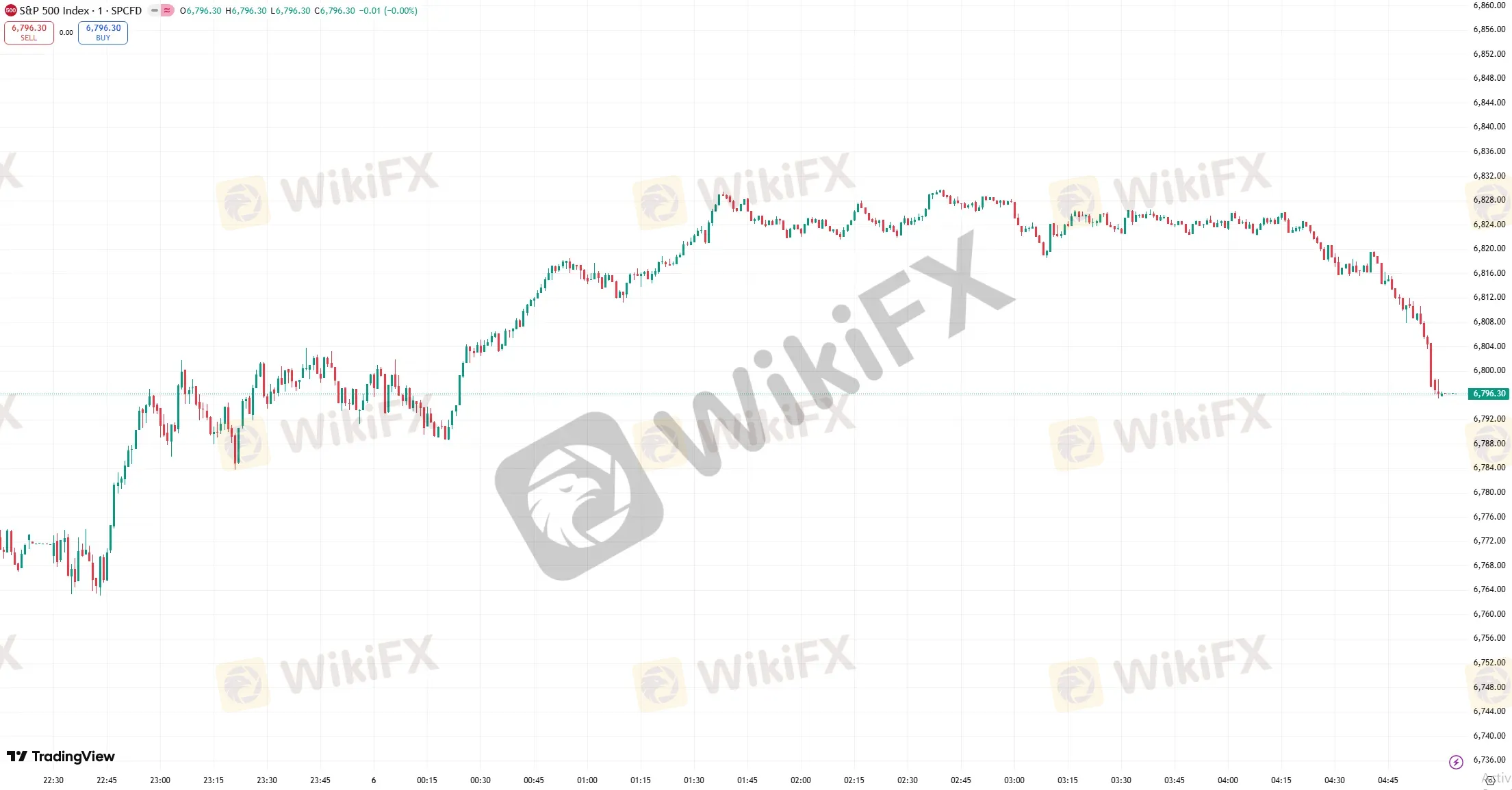 标普 500 指数涨 24.74 点,涨幅为 0.37%,报 6796.29 点