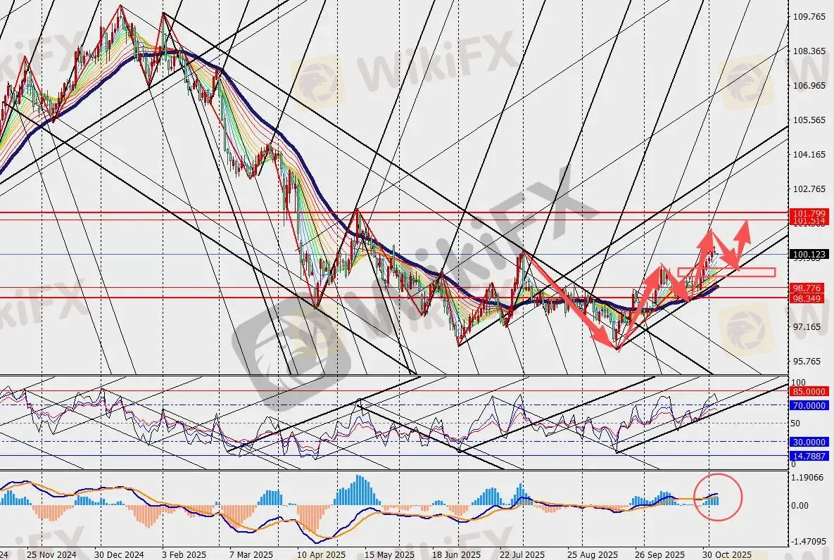 美元指数日线级别震荡上行,MACD双线和量能柱在零轴上方扩张。本次ADP数据虽未改变宽松主线,但为市场提供了喘息空间。短期波动料在可控范围内,长期走势仍取决于官方就业数据的复苏成色与政策响应。