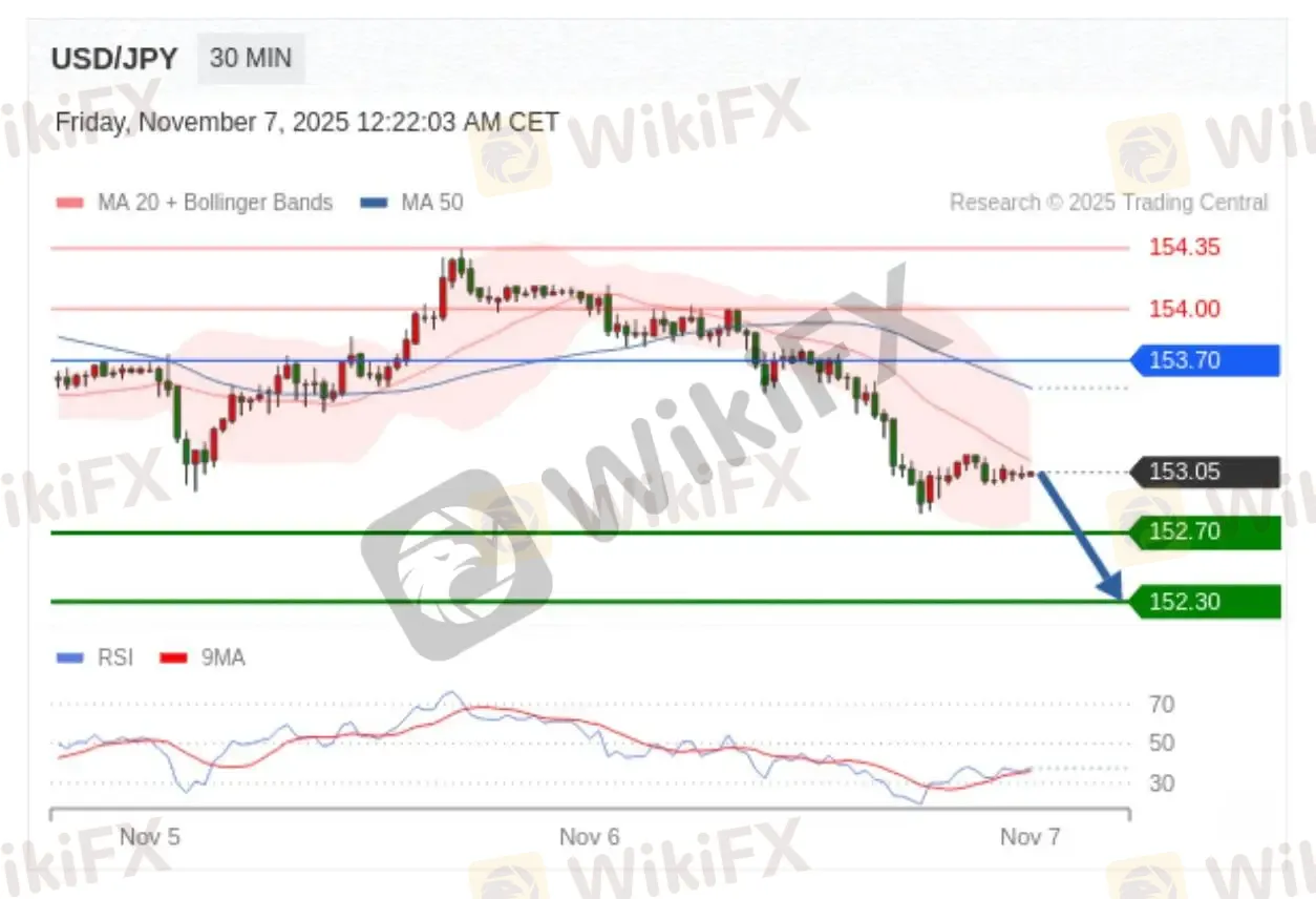 在 153.70 之下,看跌,目标价位为 152.70 ,然后为 152.30 。