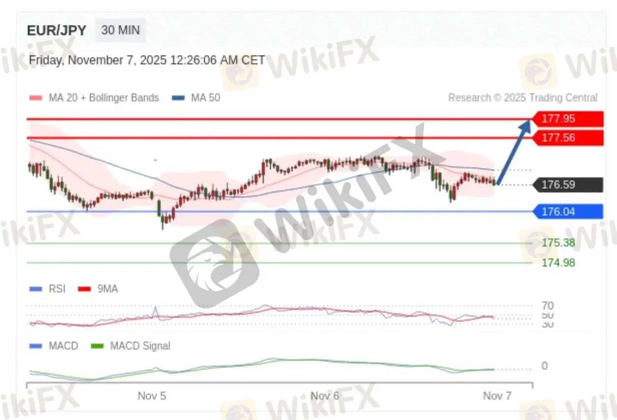 欧元/日元 当日内: 有上涨的可能,目标价位定在 177.95 。