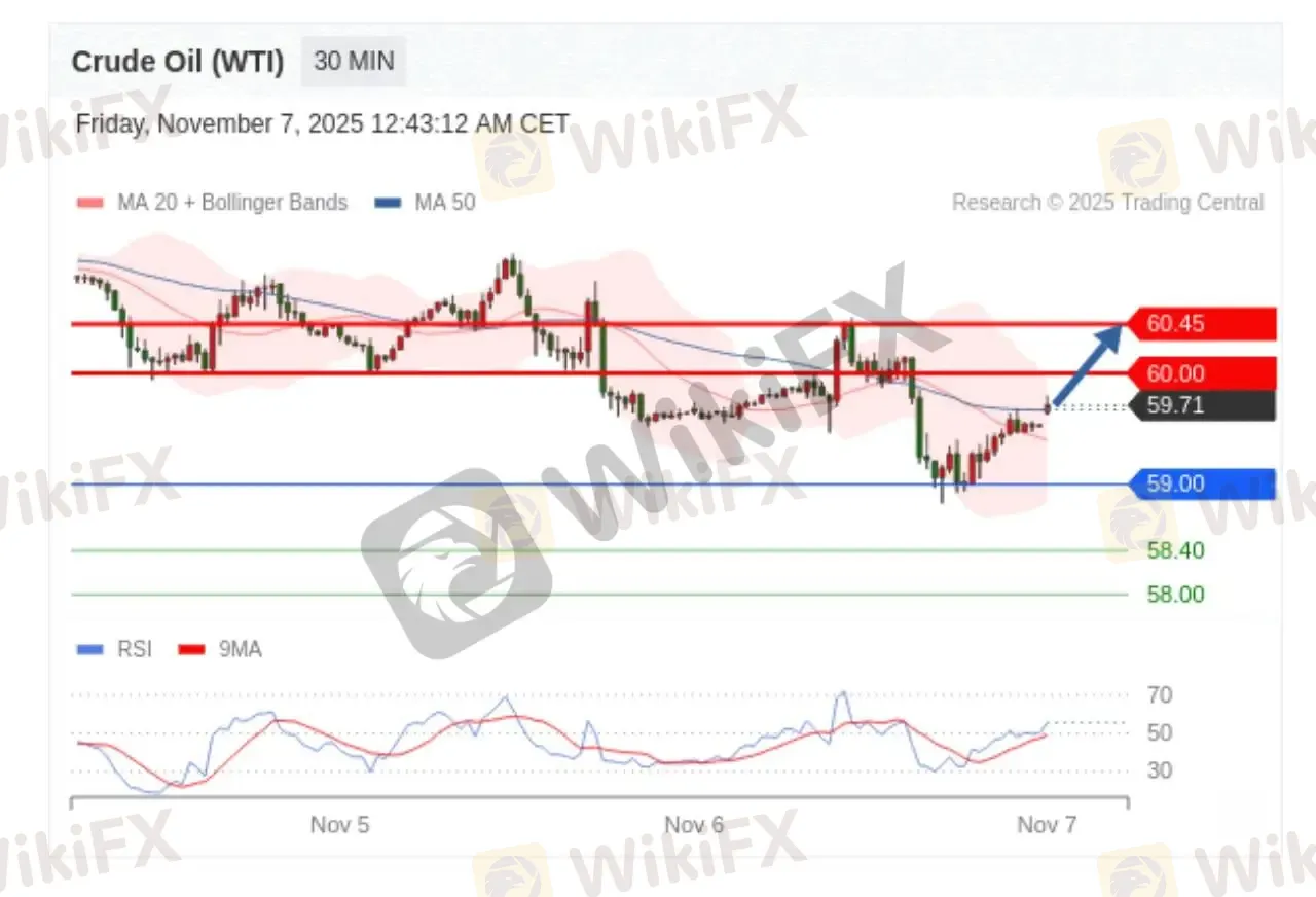 在 59.00 之上,看涨,目标价位为 60.00 ,然后为 60.45 。