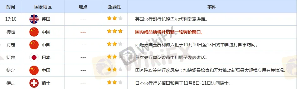 前日公布数据与消息: