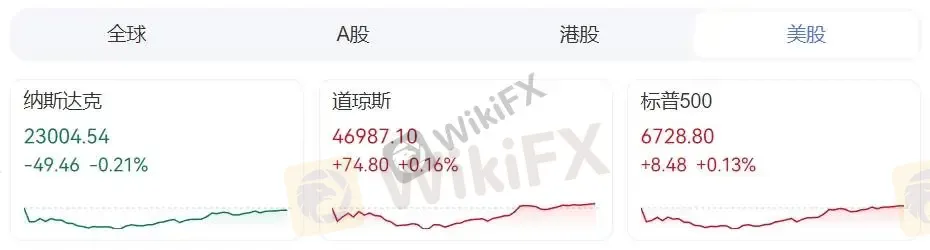 11月7日,美股标普和道指尾盘拉升收涨,但纳指仍走低,本周累跌超3%。道琼斯工业平均指数收涨74.80点,涨幅0.16%,报46987.10点,本周累跌1.21%。标普500指数收涨8.48点,涨幅0.13%,报6728.80点,本周累计下跌1.63%。纳指收跌49.455点,跌幅0.22%,报23004.538点,本周累跌3.04%。